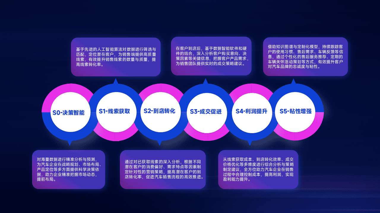 通过拓宽潜在客户来源、、优化线索分配并提高到店转化率,,,,以增强销售效率。。。。同时,,,利用线索数据不断优化分析模型,,,有效提升转化率,,,,扩大营销影响力。。